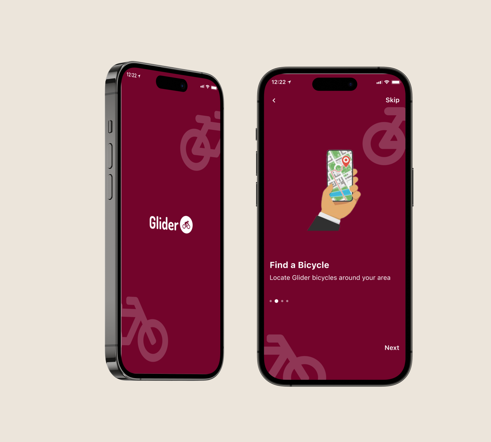 The Glider app is a stationless bicycle-sharing software application that allows users to locate nearby bicycles on their smartphones.