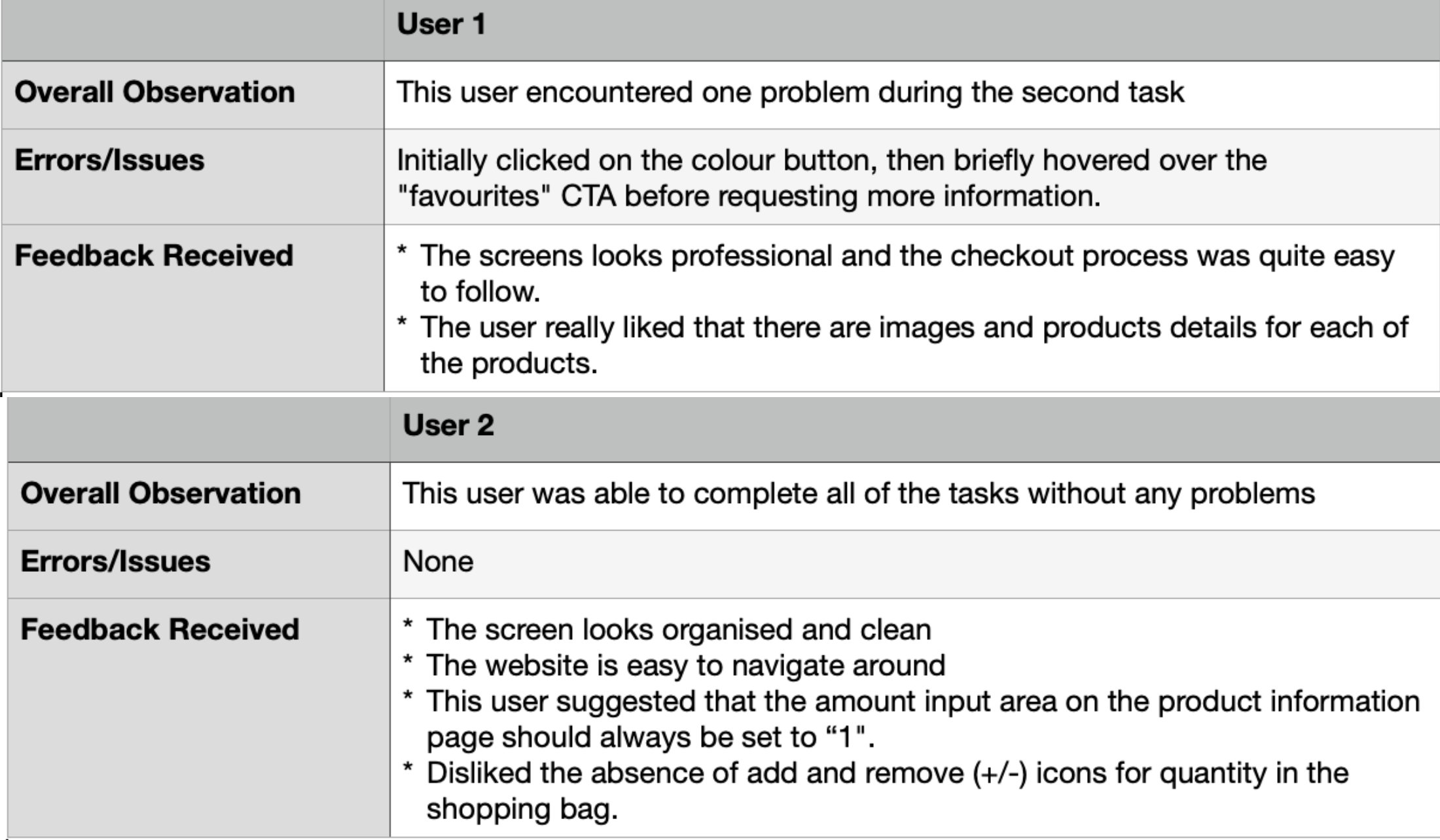 Two of the four participants stated their dissatisfaction with online stores presenting items that are out of stock in their sizes.