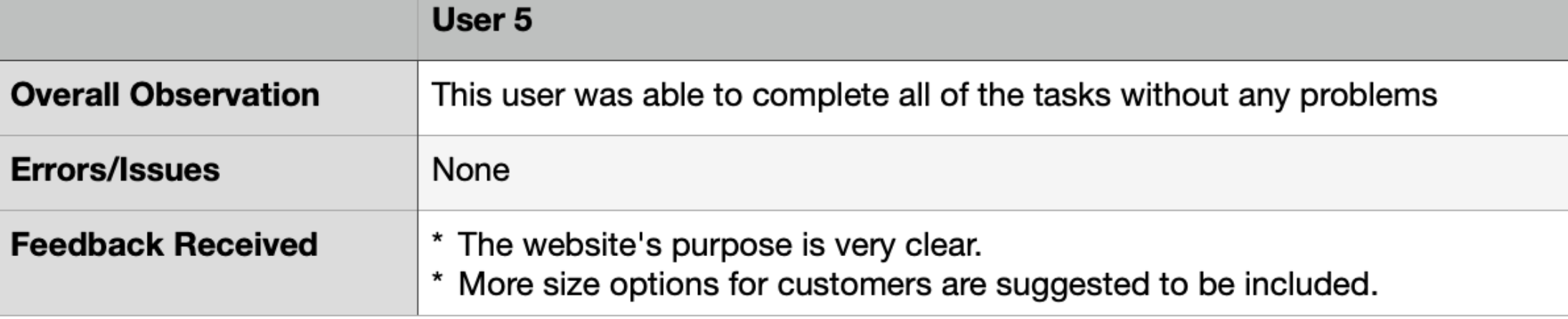 Five people took part in the test via online video conversations, and their sessions were recorded. Several areas for improvement were able to be determined thanks to significant testing results and participant input.